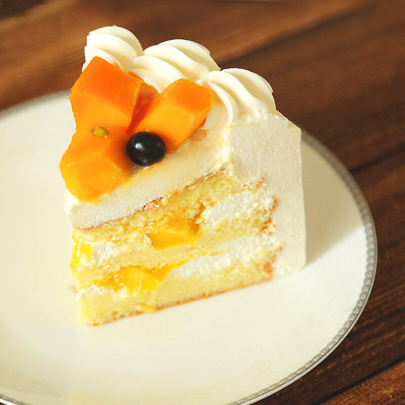蛋糕味道很不错,送货也蛮快的,唯一的遗憾就是我媳妇芒果过敏,两个人吃不完