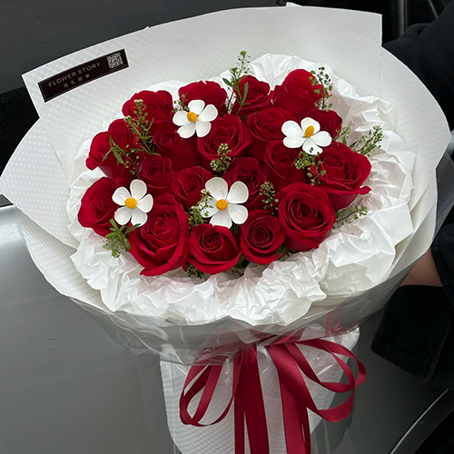 【白月光与朱砂痣】98朵白玫瑰,1朵红玫瑰,红玫瑰居中。