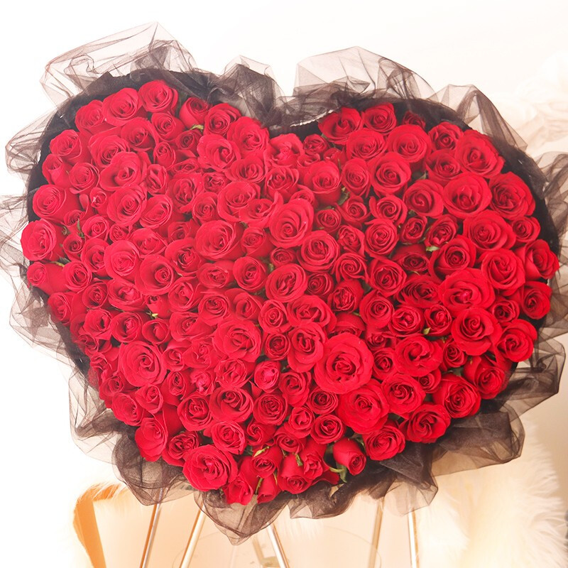 花材: 精选199枝卡罗拉红玫瑰,心形造型。